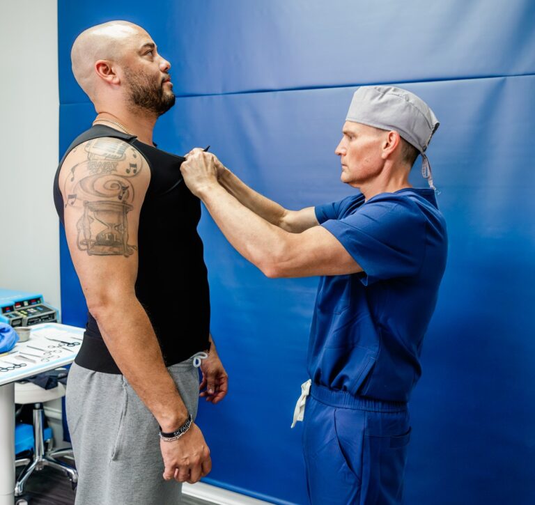Dr. Beck’s precise, minimally invasive approach helps most men get back to their normal activities within 24 hours. Skin tightens quickly, swelling remains minimal, and often, skin removal isn’t necessary. Most men notice immediate improvement in chest shape as the swelling settles.
